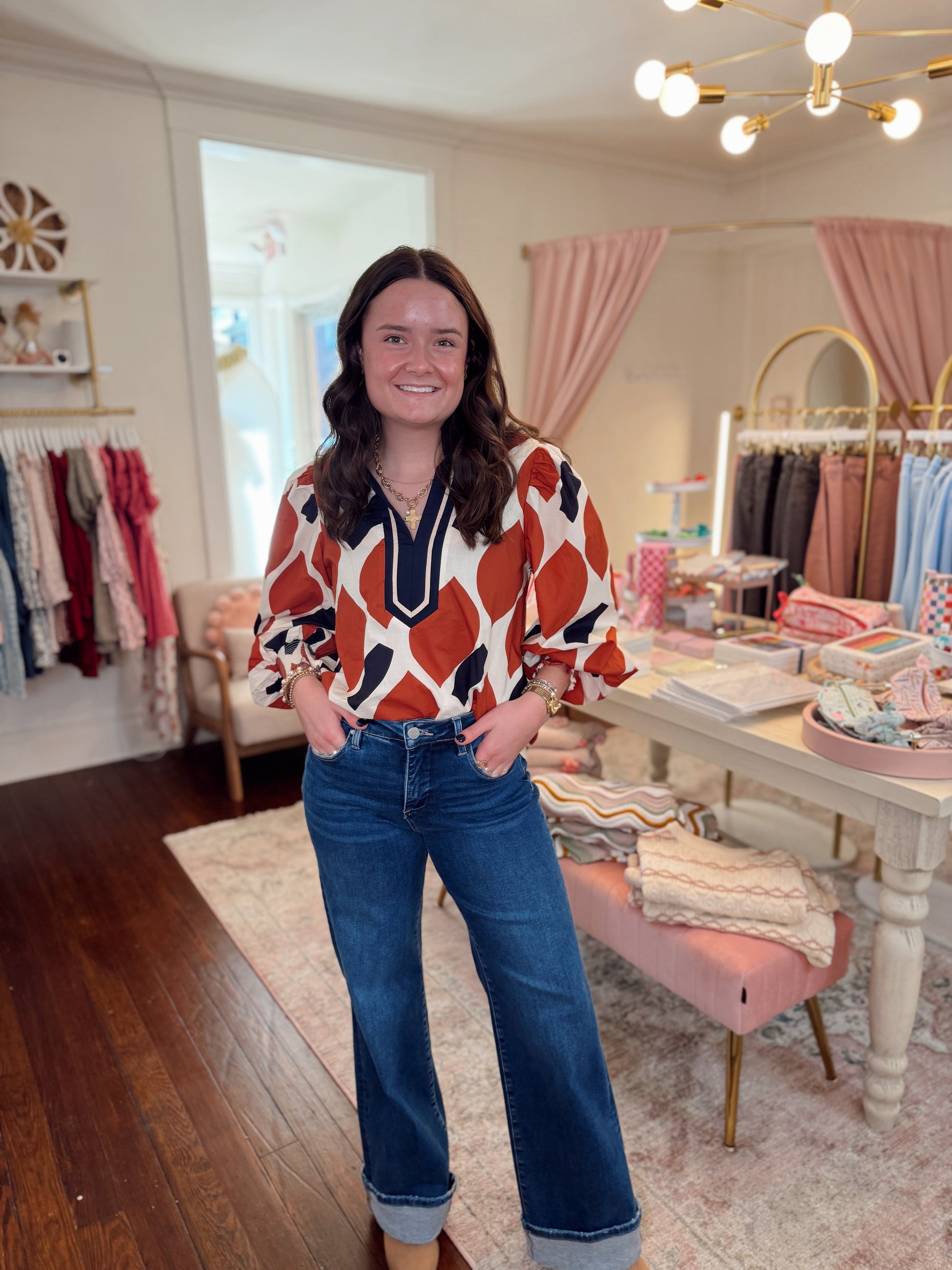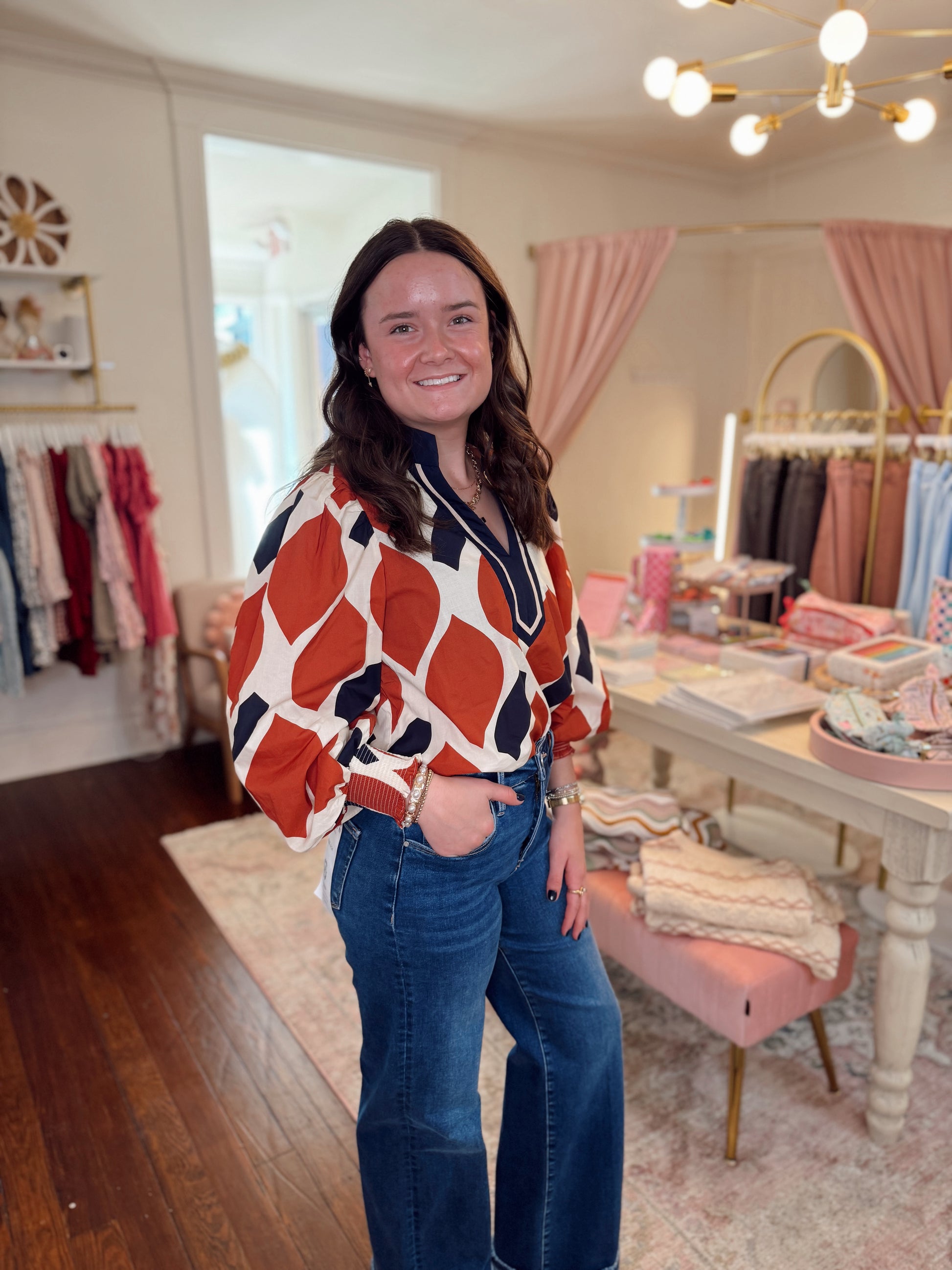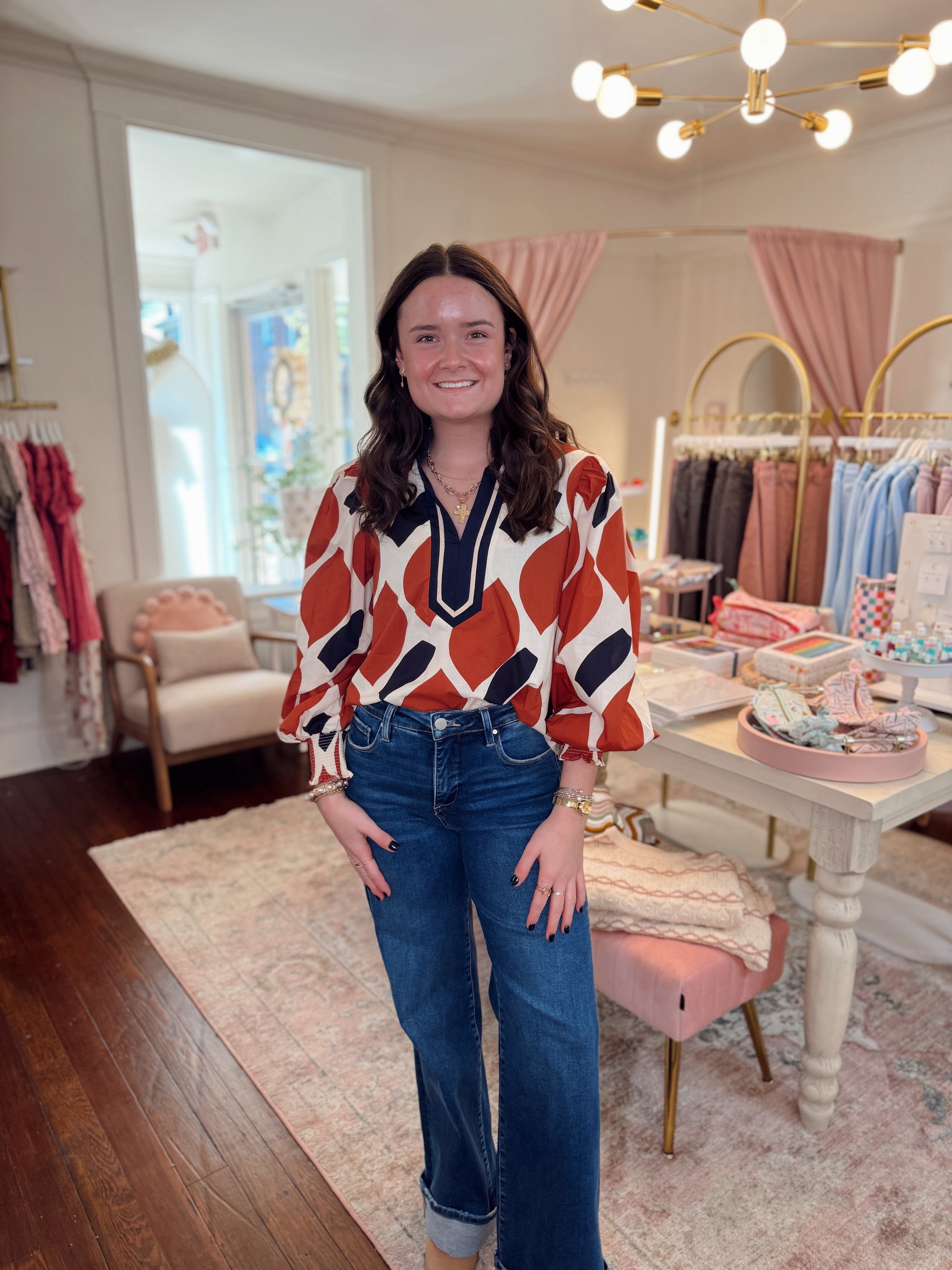 Adeline Navy & Rust Top