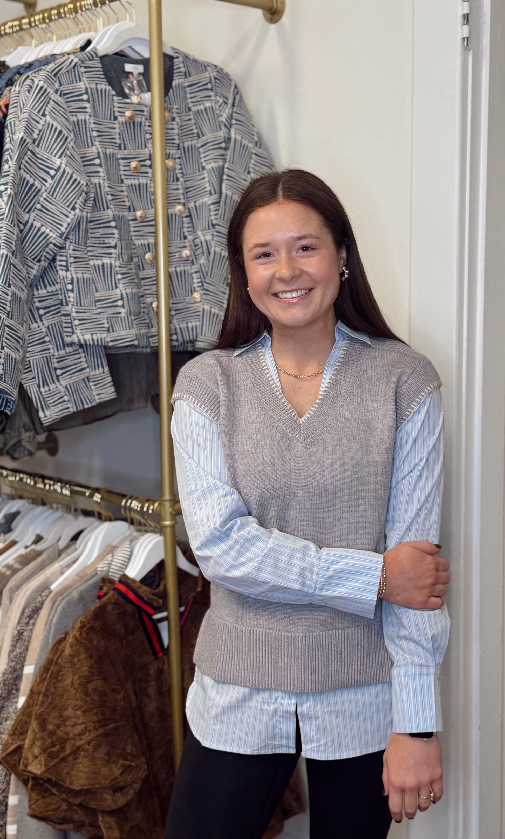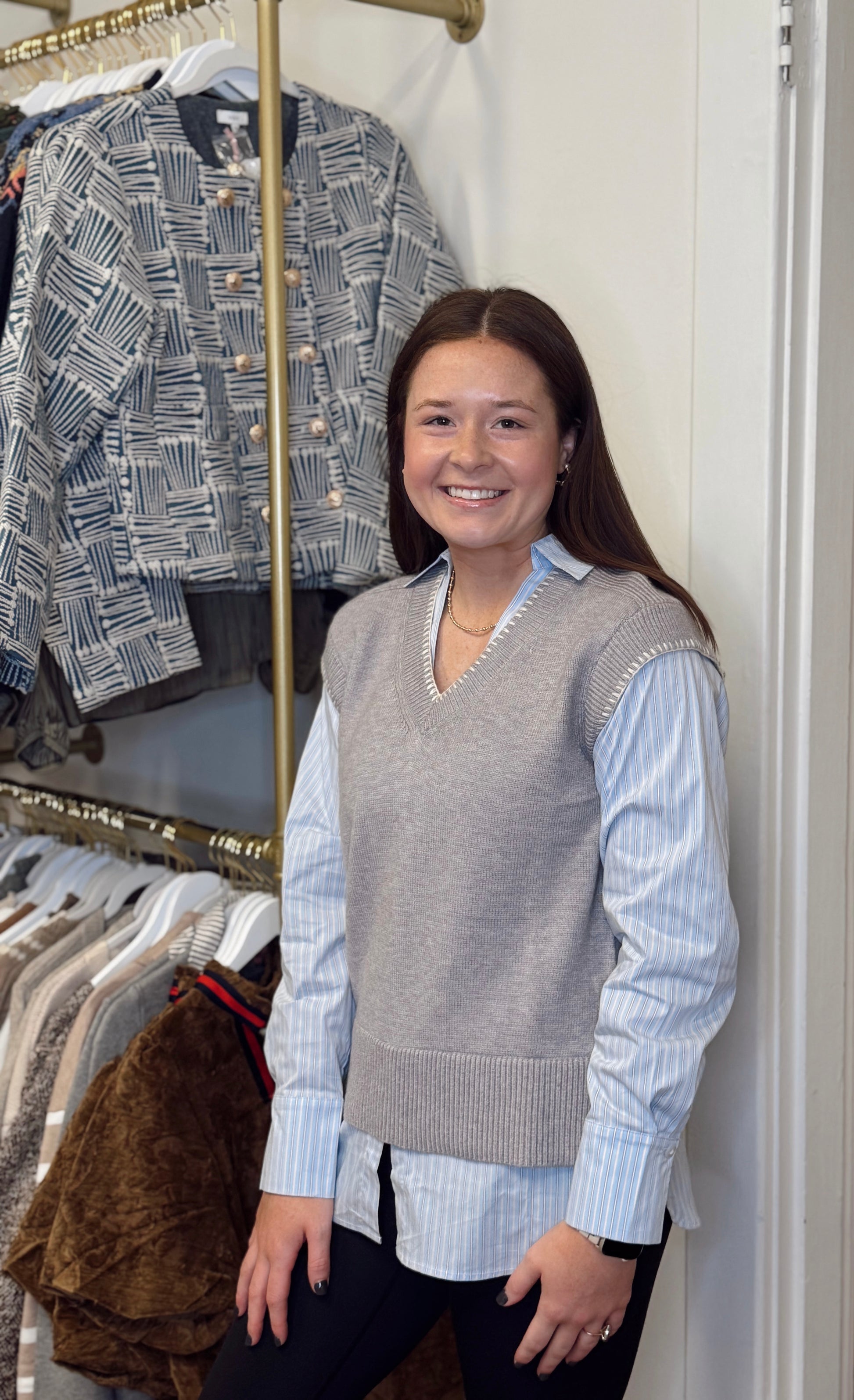 Hasting Gray Mixed Media Top