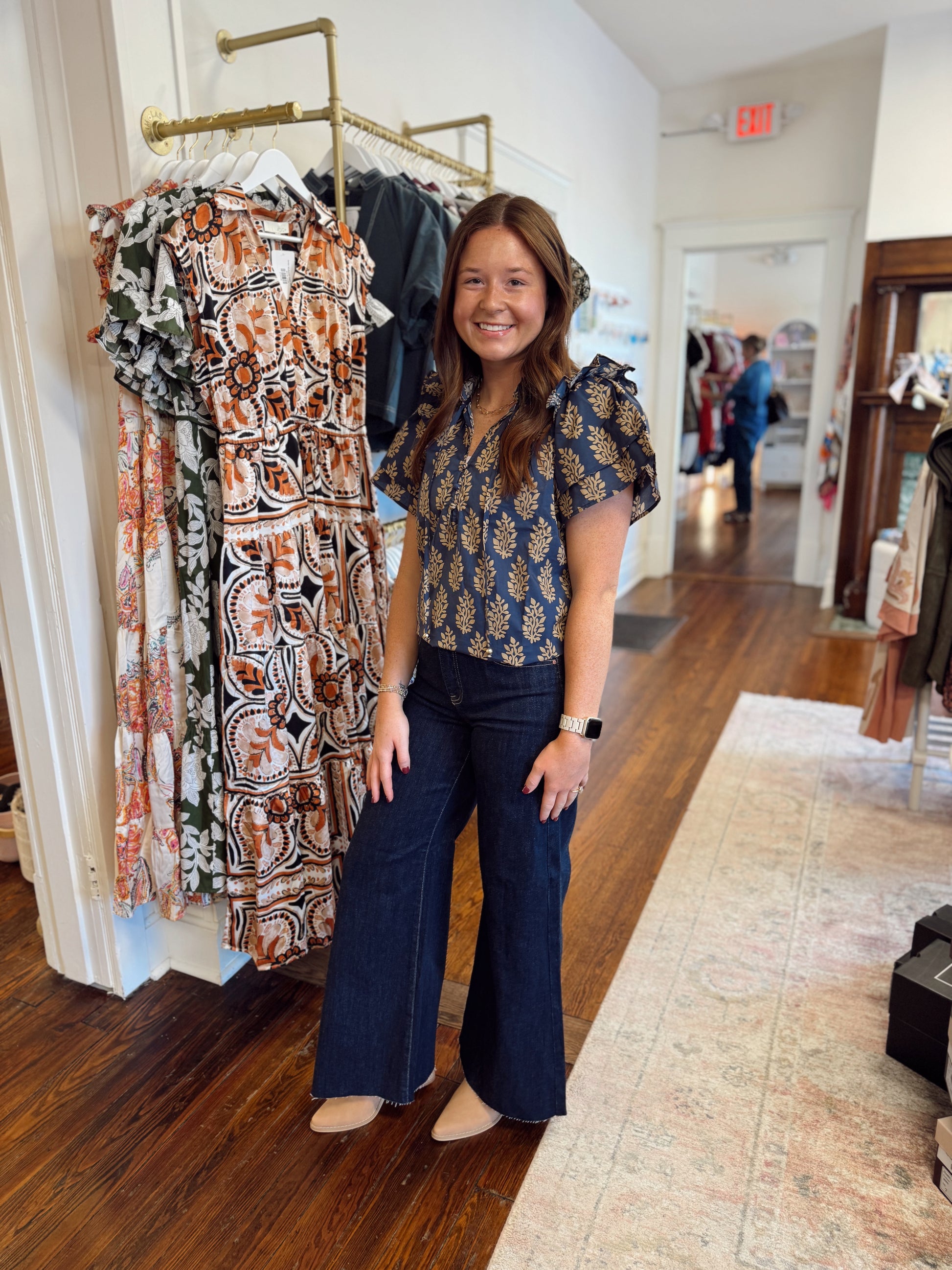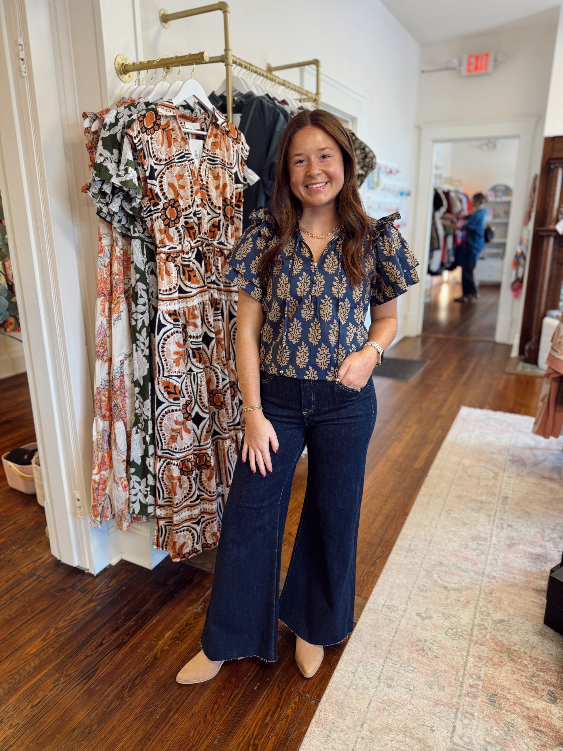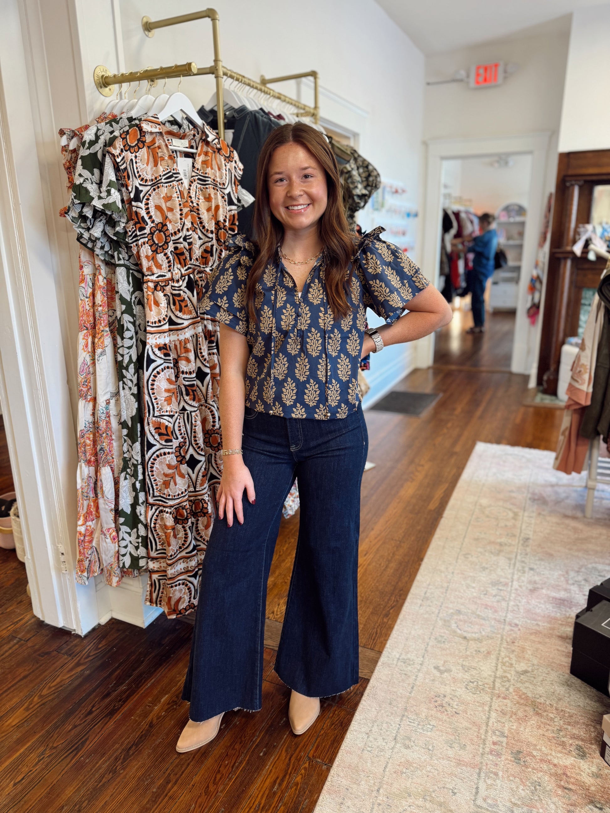 Rena Midnight Ruffle Sleeve Top
