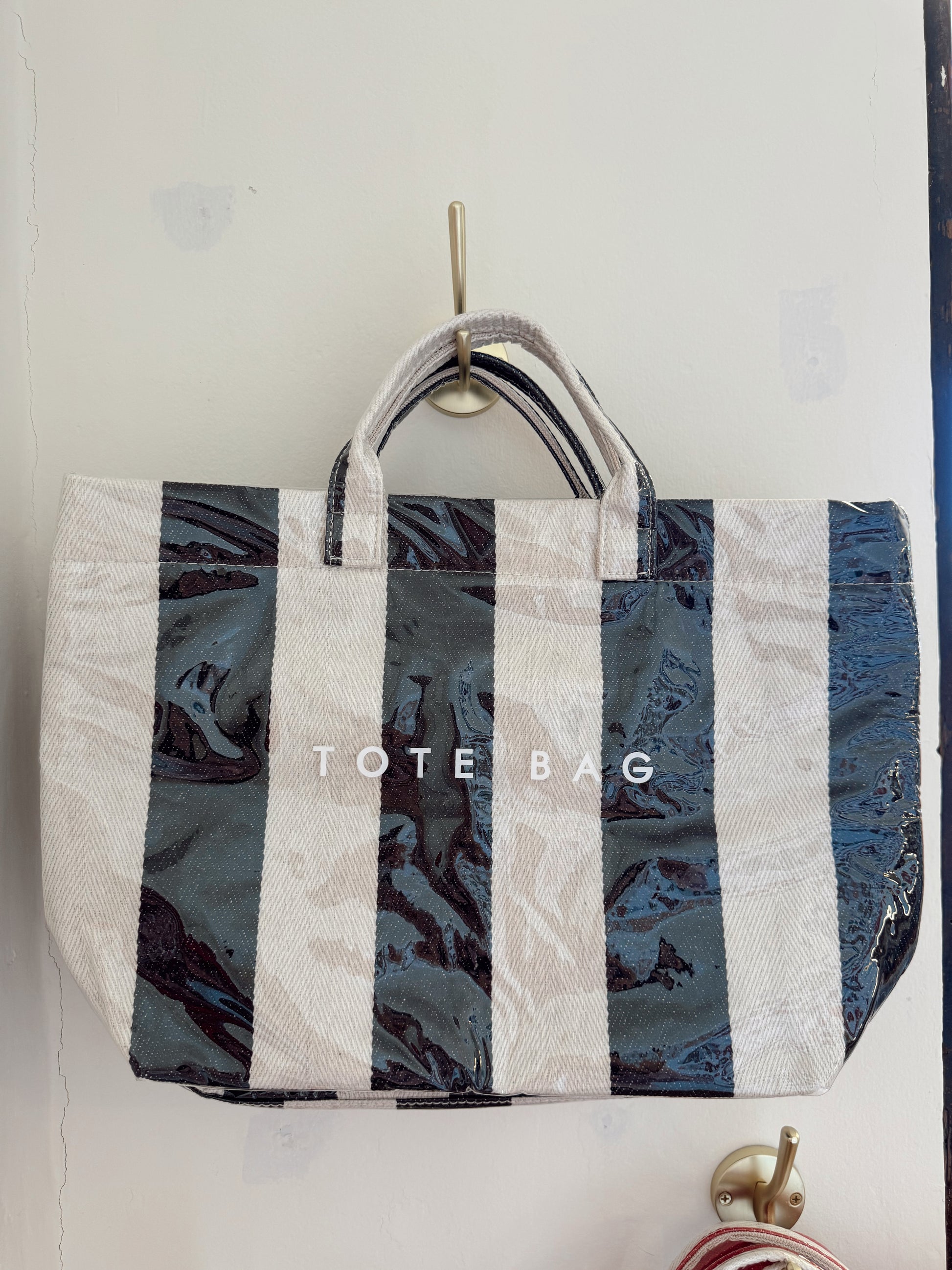 Carry your essentials in style with this black and ivory stripe tote bag, designed for water-loving adventures. Whether you're heading to the lake or beach, the waterproof construction keeps your belongings protected from splashes and moisture. The bold leopard pattern makes a confident fashion statement while the spacious interior handles everything from sunscreen to towels. Durable and practical, this tote transitions seamlessly from poolside to everyday use.